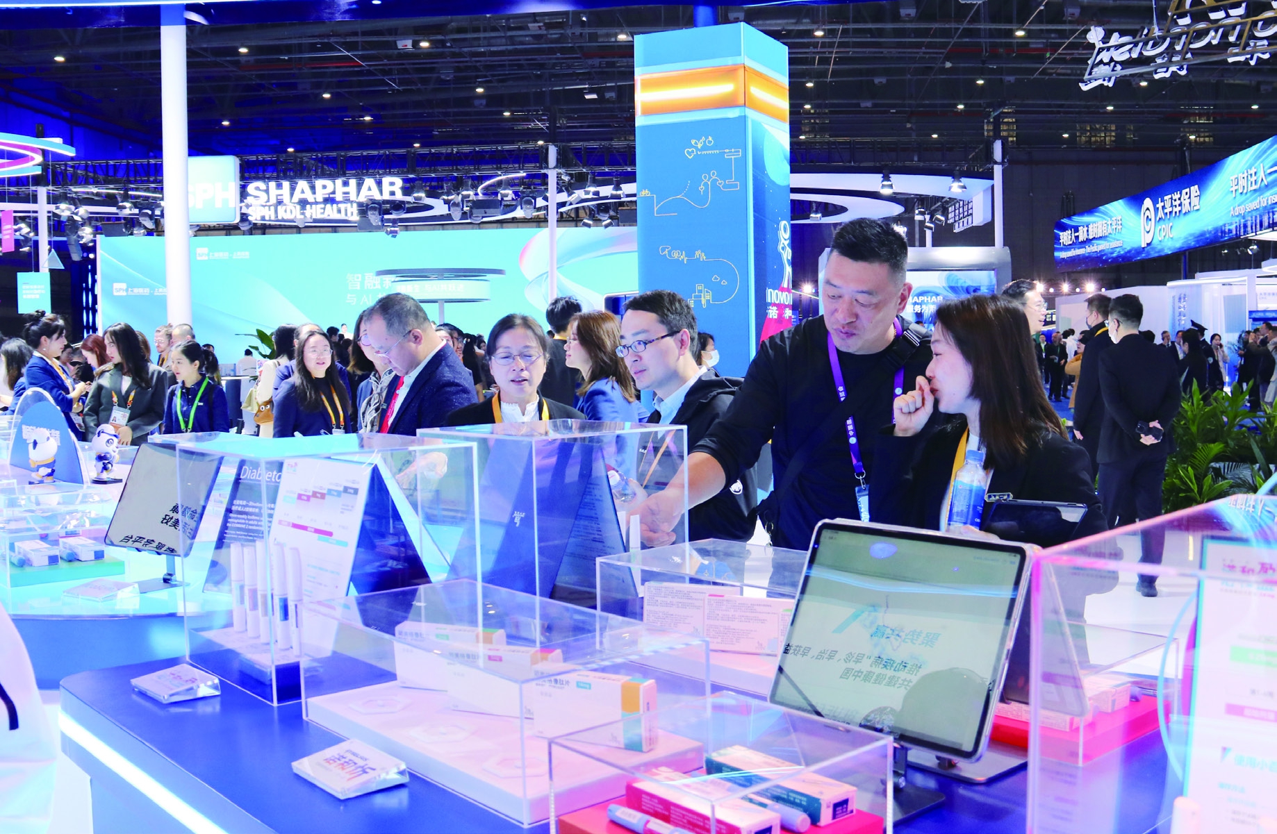 近日,第八届中国国际进口博览会药品展区吸引众多观众驻足参观体验。