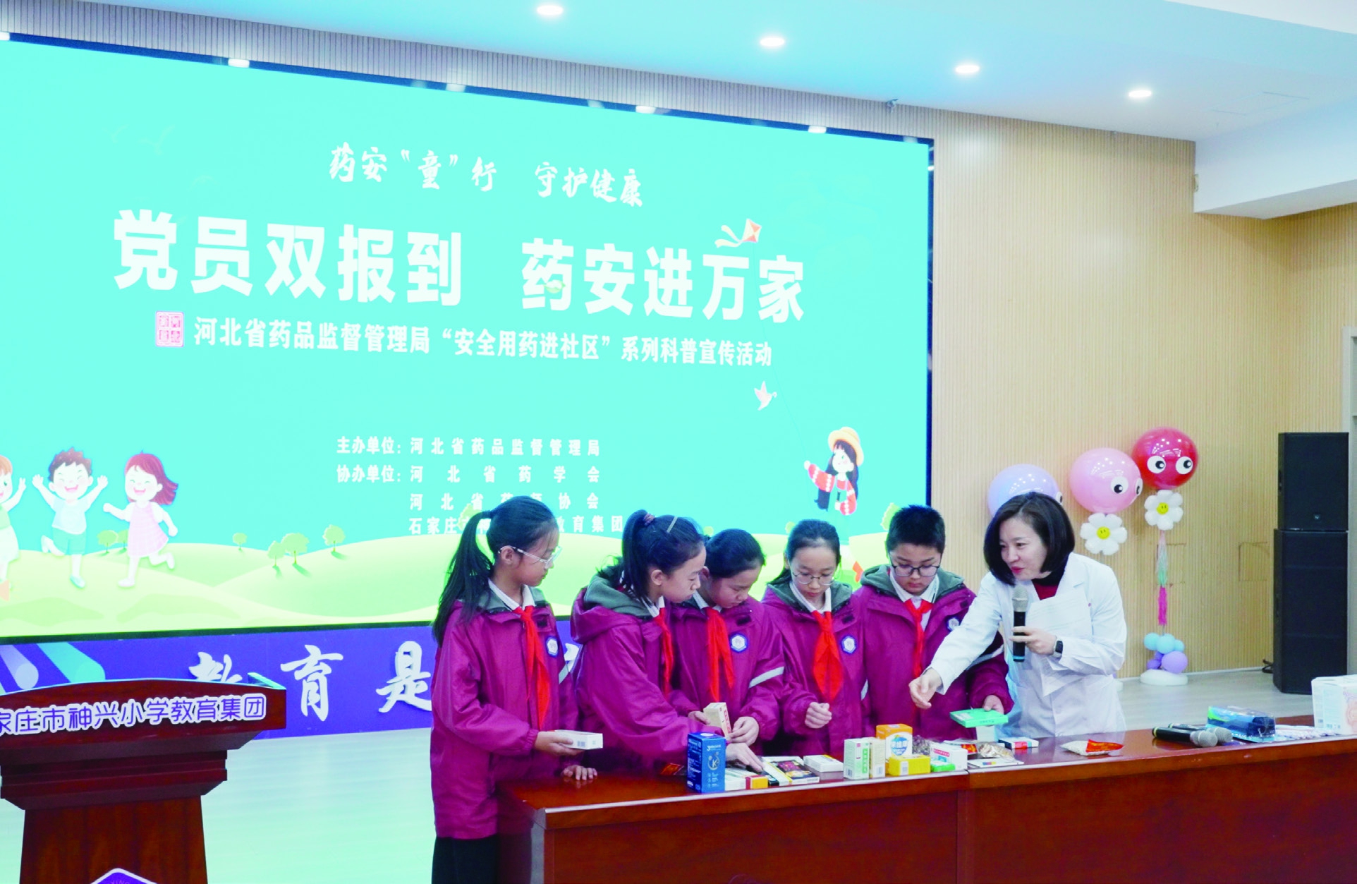 近日,河北省药监局主办、河北省药品医疗器械检验研究院第二党支部承办的“党员双报到 药安进万家”科普宣传活动在石家庄市槐南实验小学举办。此次活动以趣味教学与互动实践相结合的方式,面向近170名师生宣传药品安全知识。