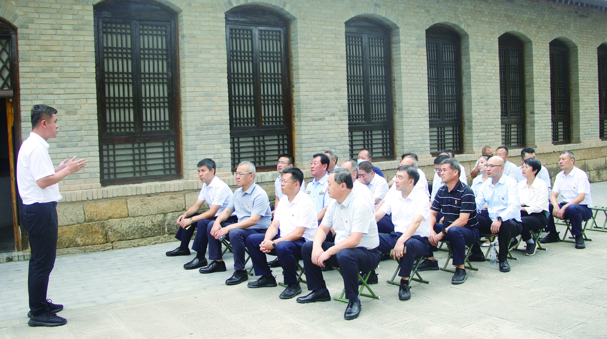 2024年9月6日,陕西省药监局党组理论学习中心组在延安开展主题党日活动。活动期间,党员干部在王家坪革命旧址听教学老师讲述《窑洞里也有马克思主义》历史教育课。 贺一辰 摄
