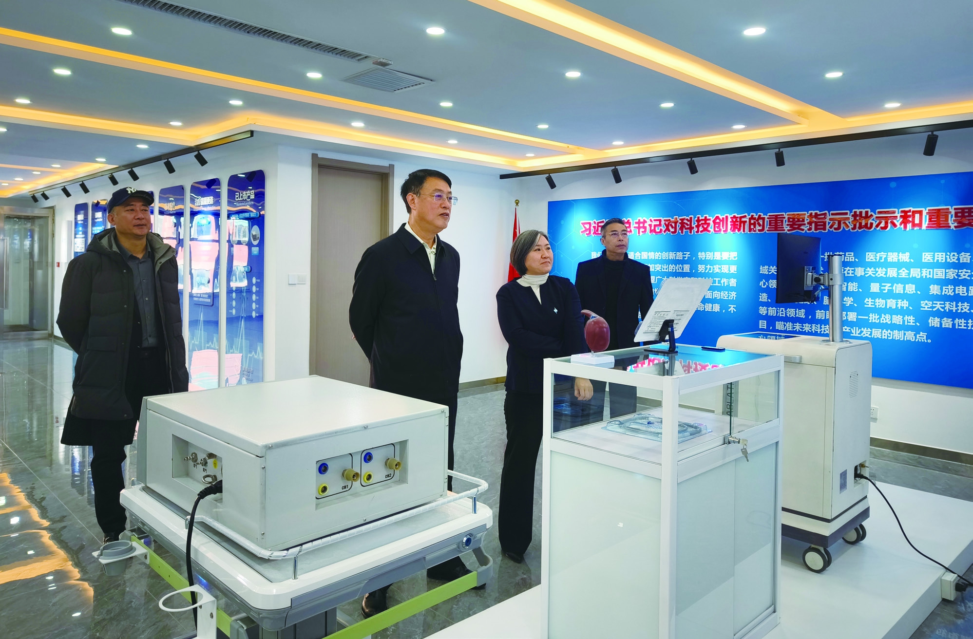 2025年12月11日,辽宁省药监局党组书记、局长田东泉(左二)带队深入沈阳鹏悦科技有限公司调研。辽宁省药监局供图