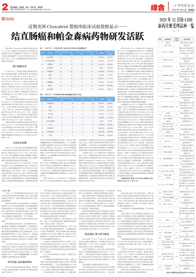结直肠癌和帕金森病药物研发活跃