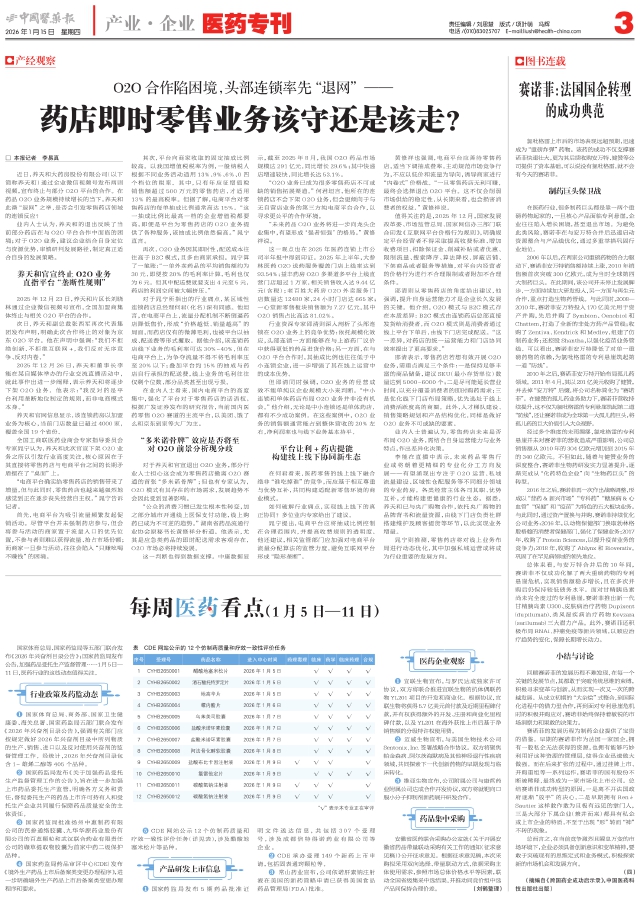 业内人士认为,养天和的退出反映了当前部分药店在与O2O平台合作中面临的困境;对于O2O业务,建议企业结合自身定位与资源优势,审慎研判发展路径,制定真正适合自身的发展策略。