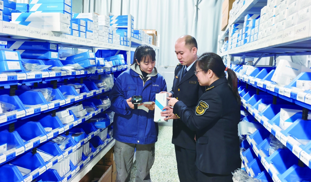 图②:2025年12月15日,山东省药监局区域检查第三分局到一家企业开展现场检查,督促企业落实《医疗器械网络销售质量管理规范》要求。张文军 摄
