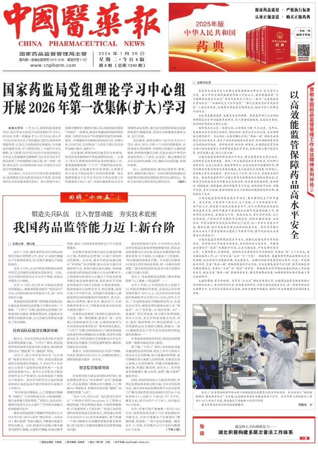 大盘取厚势,落子开新局。今年是“十五五”规划的开局之年,全国药品监管系统要坚持以更加坚定的决心、更加科学的方法、更加务实的作风,不断完善药品监管体系,进一步提升药品安全保障水平,全方位筑牢药品安全底线,为助力健康中国建设、保障人民生命健康作出新的更大贡献。