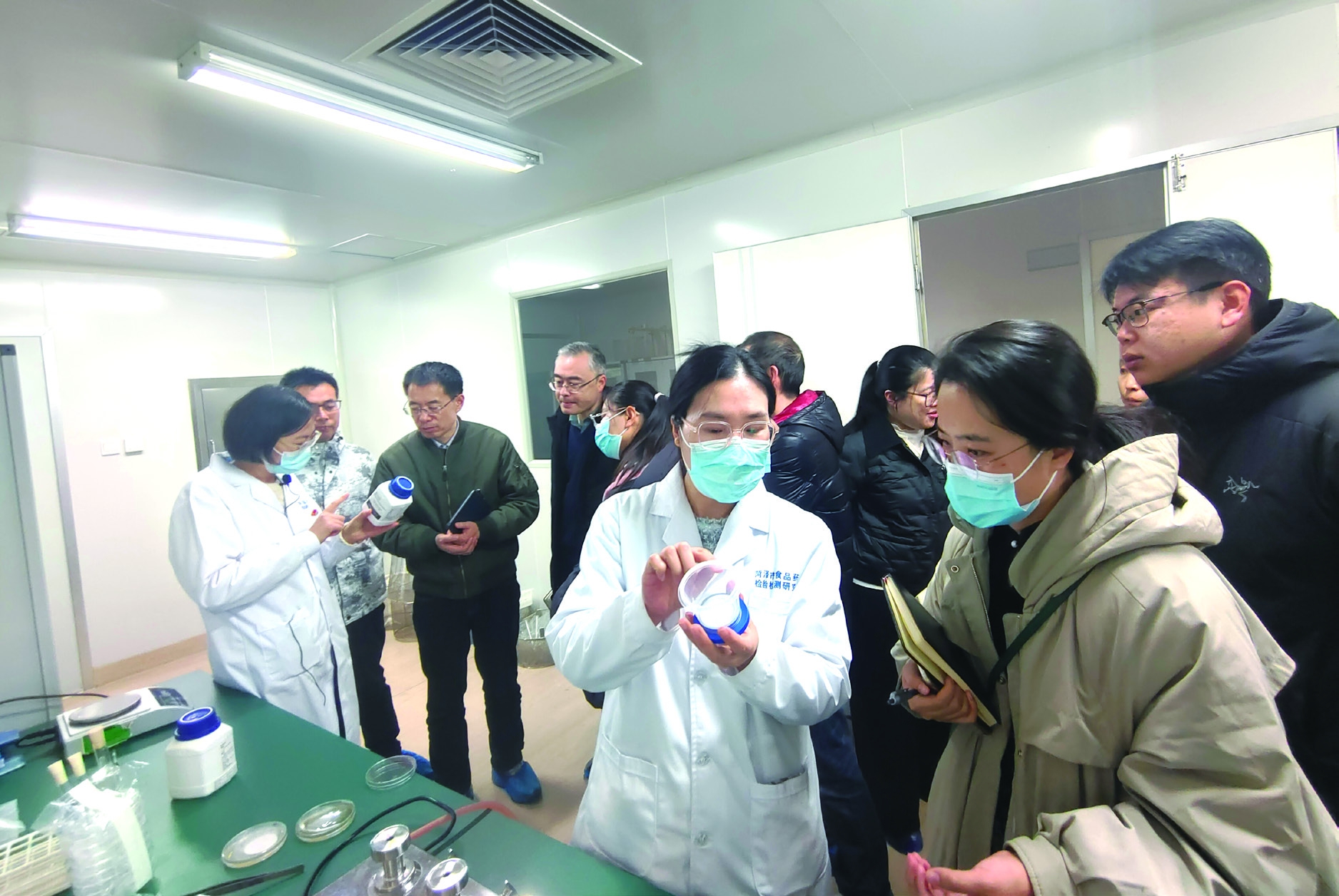 图为授课老师为检查员们细致讲解实验操作注意事项、检查要点等内容。