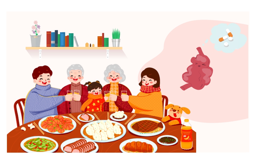 新年伊始,万象更新。一进农历腊月,家家户户就开始置办年货,采购酒肉果蔬。节日期间,丰盛的菜肴与频繁的聚餐常会给一些人带来烦恼——消化不良。