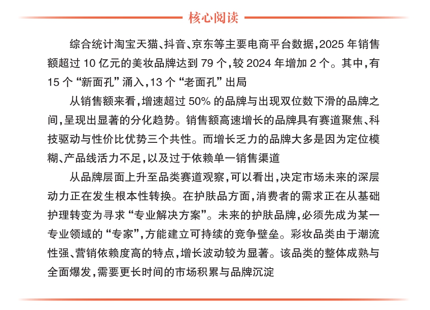 分析2025年销售额超过10亿元的品牌可以看出,当前美妆市场的增长逻辑已完成重构。以往依托单一主播或爆款单品营销即能实现销售额高增长的时代已经结束。如今的增长必须建立在品牌扎实、全面的能力之上,包括符合消费者需求的产品定位、具备技术壁垒的研发实力、全渠道协同的运营能力,以及难以替代的品牌价值等。