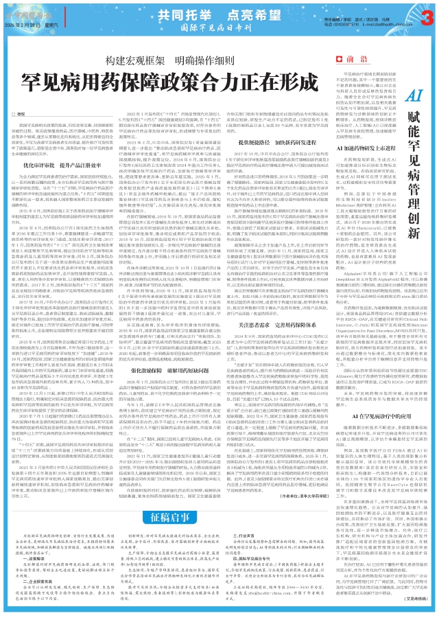 罕见病治疗领域长期面临创新不足的问题,其中一个重要原因在于患者群体规模较小,难以对企业与科研人员形成足够的投资吸引力。随着全社会对罕见病疾病负担的认知不断加深,以及相关数据可及性与可靠性持续提升,罕见病药物研发与诊断领域的创新正不断增多。从药物发现、疾病诊断到临床治疗,人工智能(AI)已深度融入罕见病全流程管理,加速赋能罕见病管理创新。