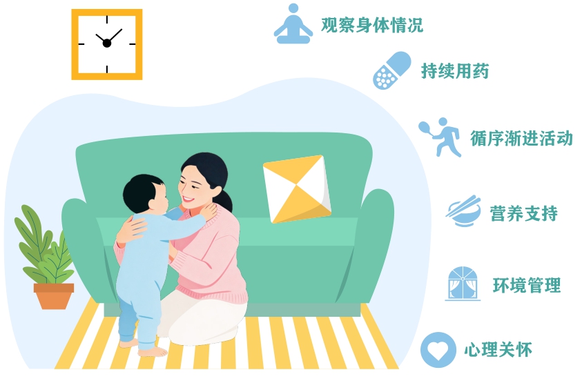 出院后1~3个月是儿童肺功能和免疫力恢复的关键时期。因此,做好居家护理非常重要。正确的居家护理不仅能防止病情反复,更能为儿童的长期健康打下坚实基础。