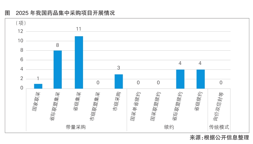 2025年,我国药品集中采购已形成“国家级主导、联盟化协同、省市级补充”的立体化组织架构。据公开信息统计,2025年我国共开展药品集采项目31项,其中国家级项目1项,占比3%;省际联盟和省级项目27项,占比87%(详见图)。