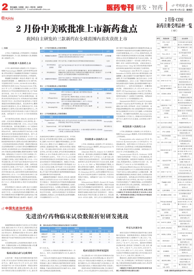 2月份中美欧批准上市新药盘点