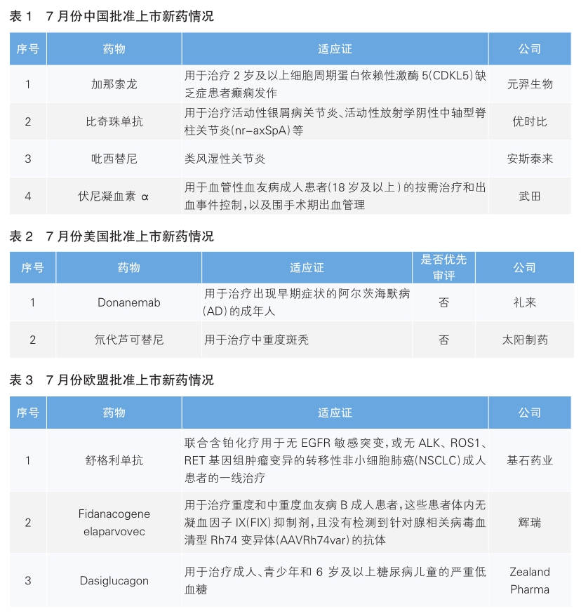 2024年7月中美欧批准上市的新药中,有两款“全球新”药物在美国获批上市。