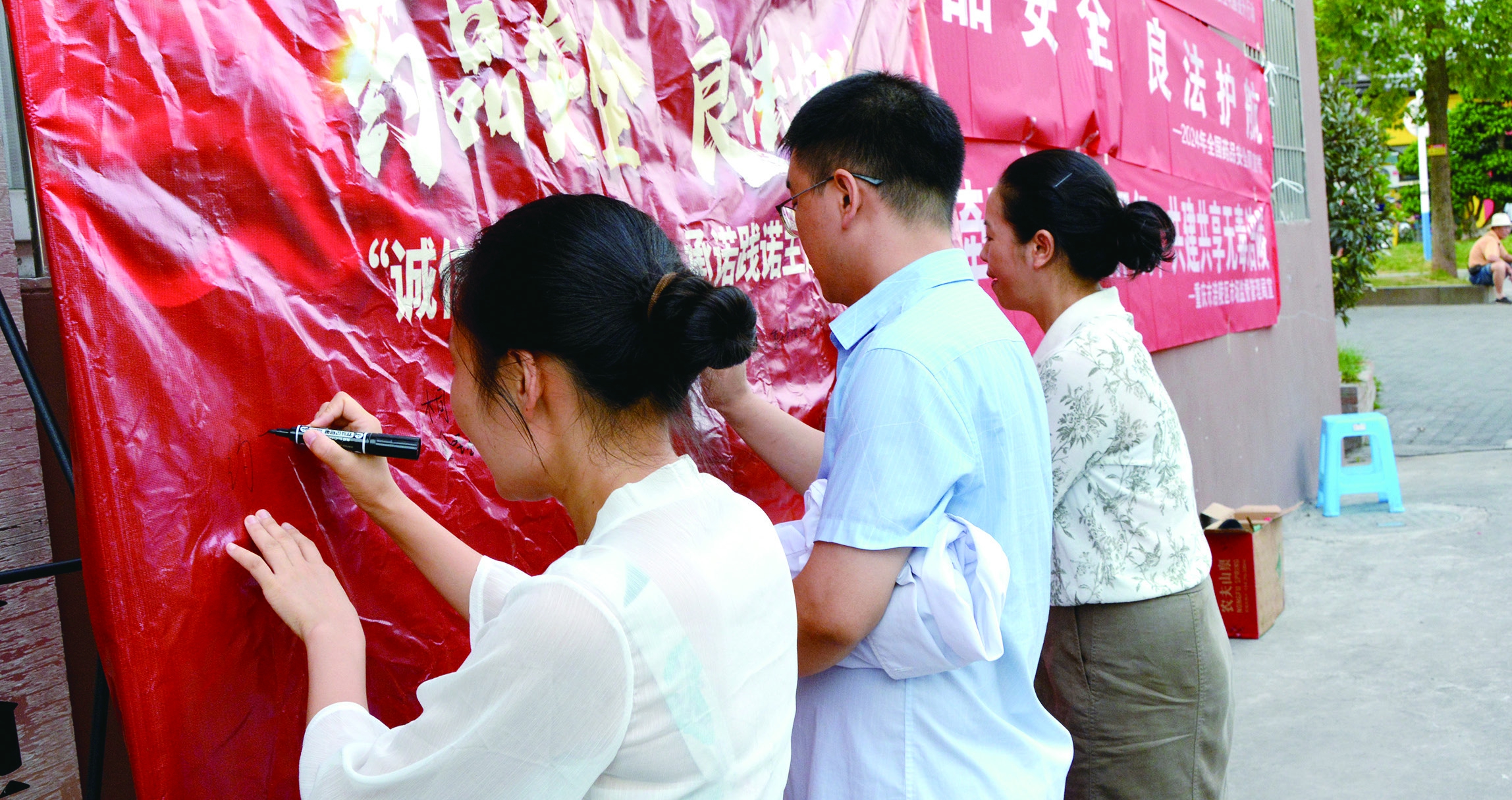 9月6日,重庆市涪陵区市场监管局组织开展“诚信经营放心消费”承诺、践诺主题签名活动,众多药品经营者在签名墙上签名。通讯员 文光辉 摄