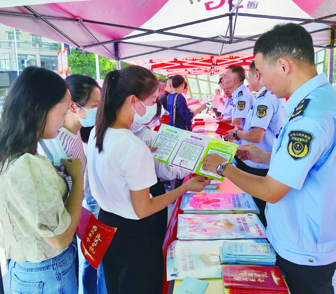 9月5日,江西省抚州市南丰县市场监管局组织开展药品安全宣传周主题宣传活动,通过设置咨询台、发放宣传资料等形式,向过往群众宣传“两品一械”安全知识。通讯员 鄢国卿 摄