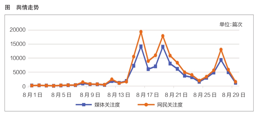 以2024年8月1日—29日为监测时间段,如图所示,舆情走势呈“波浪式”。8月16日,猴痘构成国际关注的突发公共卫生事件相关话题登上热搜,舆情达到最高峰。