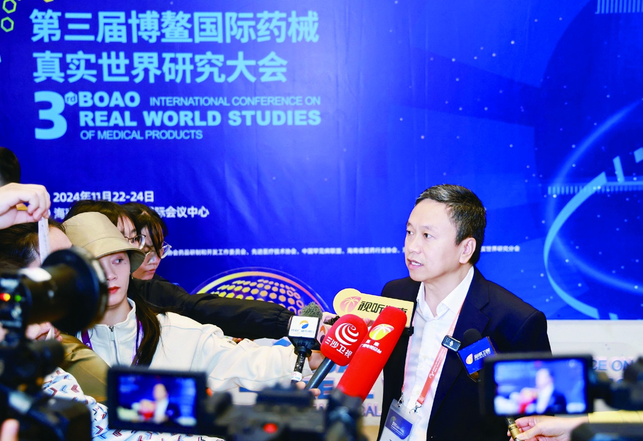 11月22日至24日,第三届博鳌国际药械真实世界研究大会在博鳌举行。图①为全体大会上,参会人员认真聆听大会主题演讲。