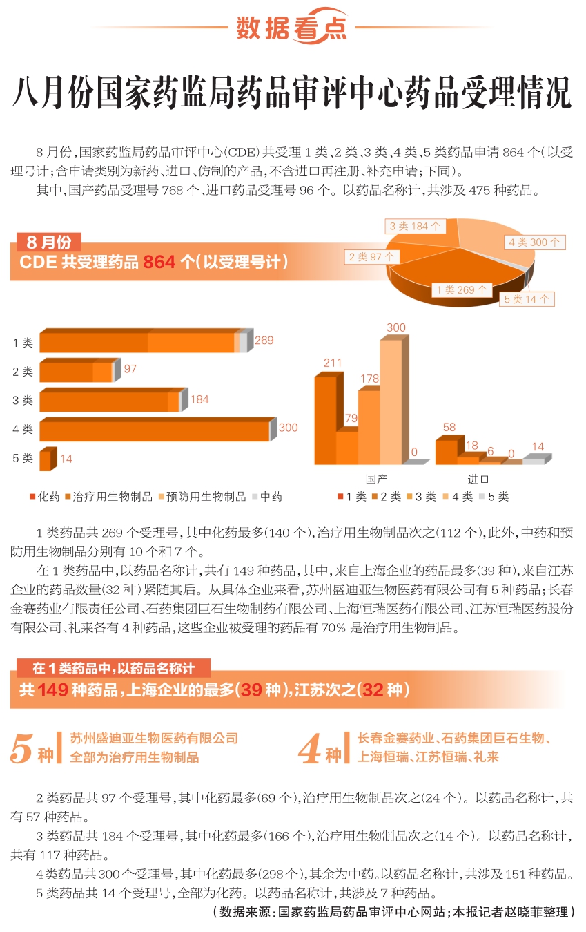 【数据看点】八月份国家药监局药品审评中心药品受理情况