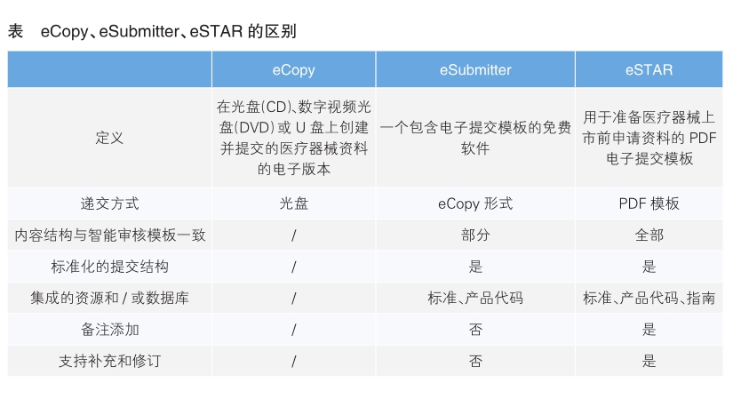 与eCopy(电子文档)和eSubmitter系统相比,eSTAR系统自动化、高集合、结构化的PDF表单能够提高申请资料的质量和一致性,减免RTA环节,从而提高审核效率。(详见表)