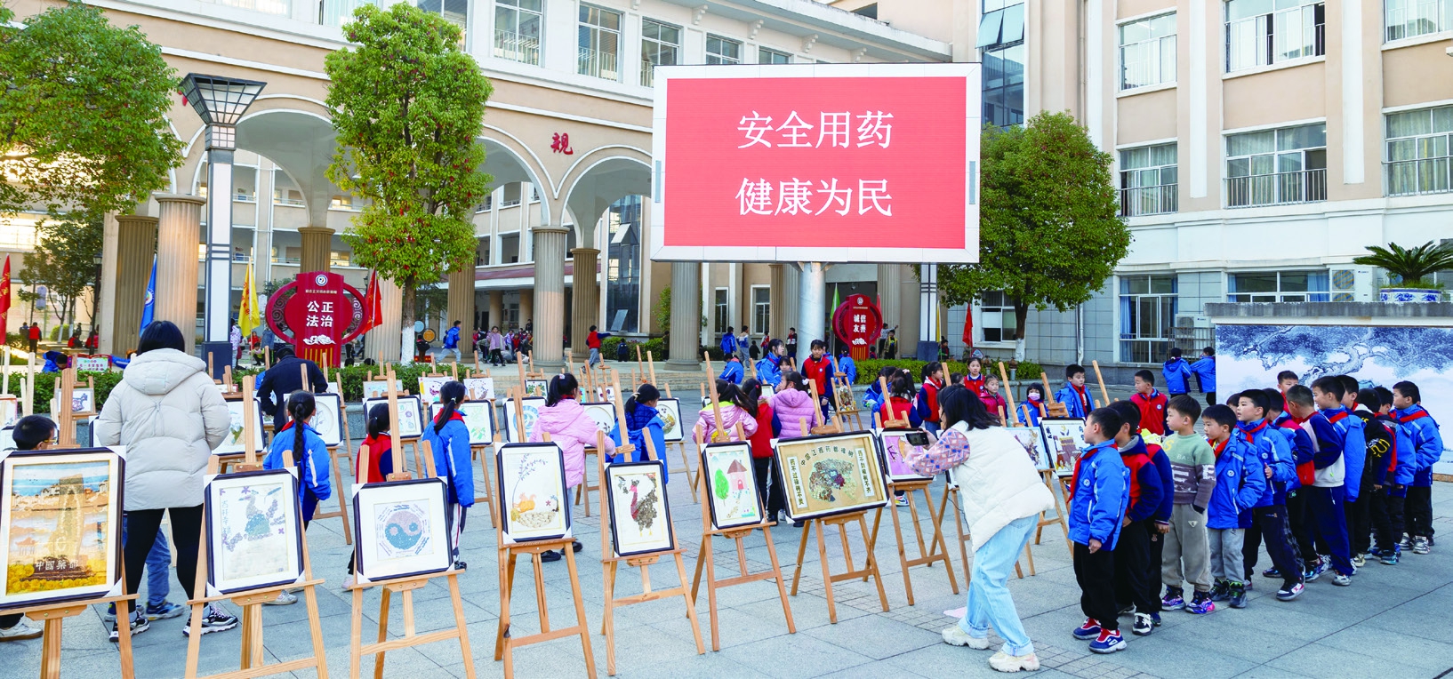 图为2023年12月,江西省药监局指导樟树药监局在樟树市药都小学举办首届“药都杯”中医药手工创意作品展示活动。 江西省药监局供图