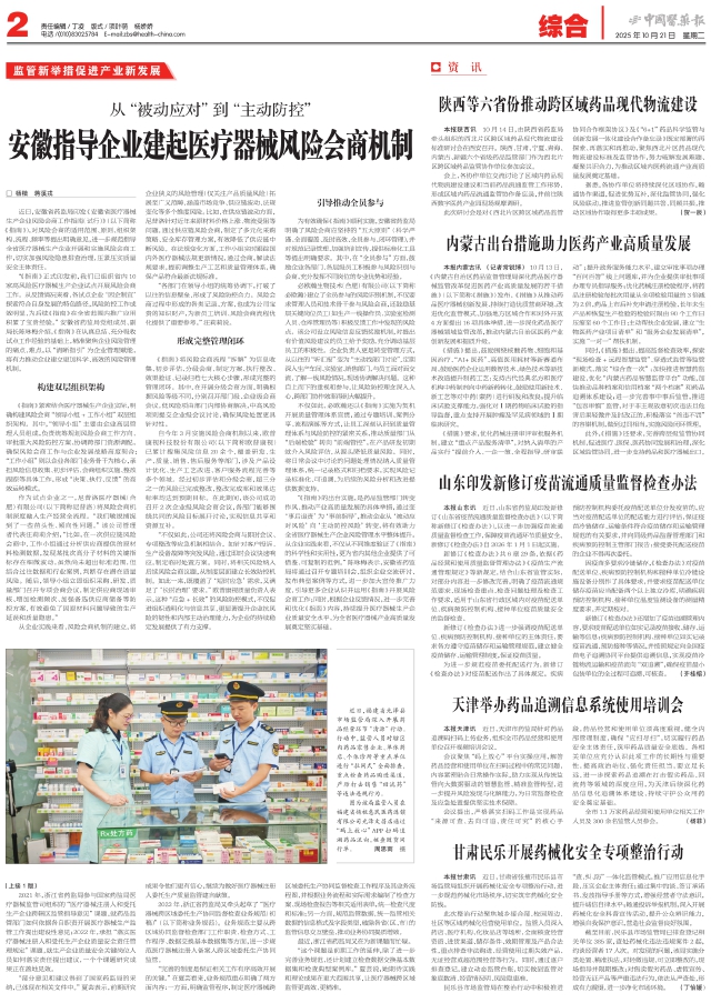 安徽指导企业建起医疗器械风险会商机制