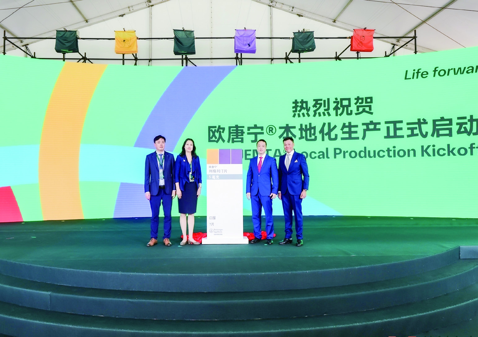 图为欧唐宁在华本地化生产计划启动仪式现场。 勃林格殷格翰供图