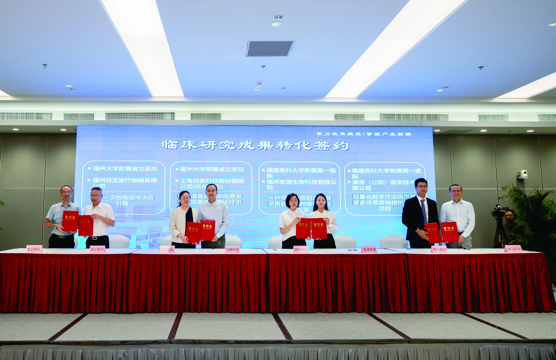 图①:2025年9月29日,“强企先锋面对面”第二期医药产业政策解读宣介暨推进医疗器械临床研究成果转化活动在福州新区举办。图为活动期间举行的临床研究成果转化签约仪式现场。福建省药监局供图