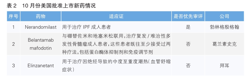 10月份,美国批准上市3款新药。根据Pharmadigger数据库,3款新药均为全球范围内首次获批(详见表2)。