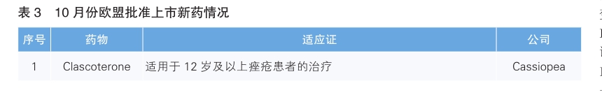10月份,欧盟批准1款新药上市,根据Pharmadigger数据库,该药并非全球首次获批(详见表3)。