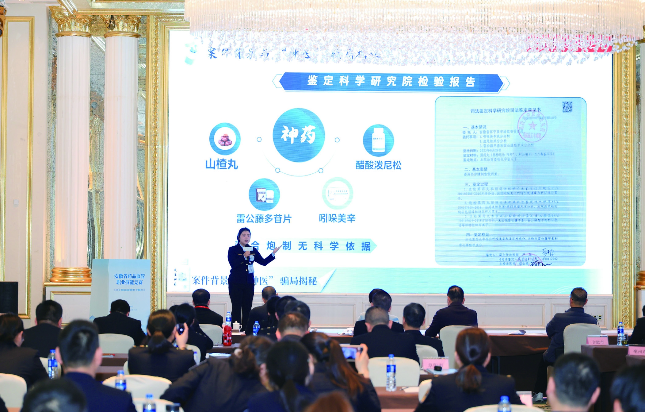 图为参赛选手在药品稽查执法技能竞赛中宣讲典型案例。