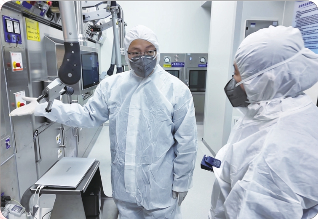 ▲2月13日,中核高通药业生产车间工作人员向记者介绍氯化镥[177Lu]溶液生产线。