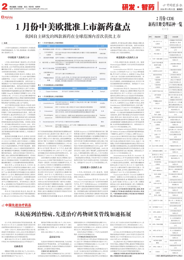 2月份CDE新药注册受理品种一览(一)