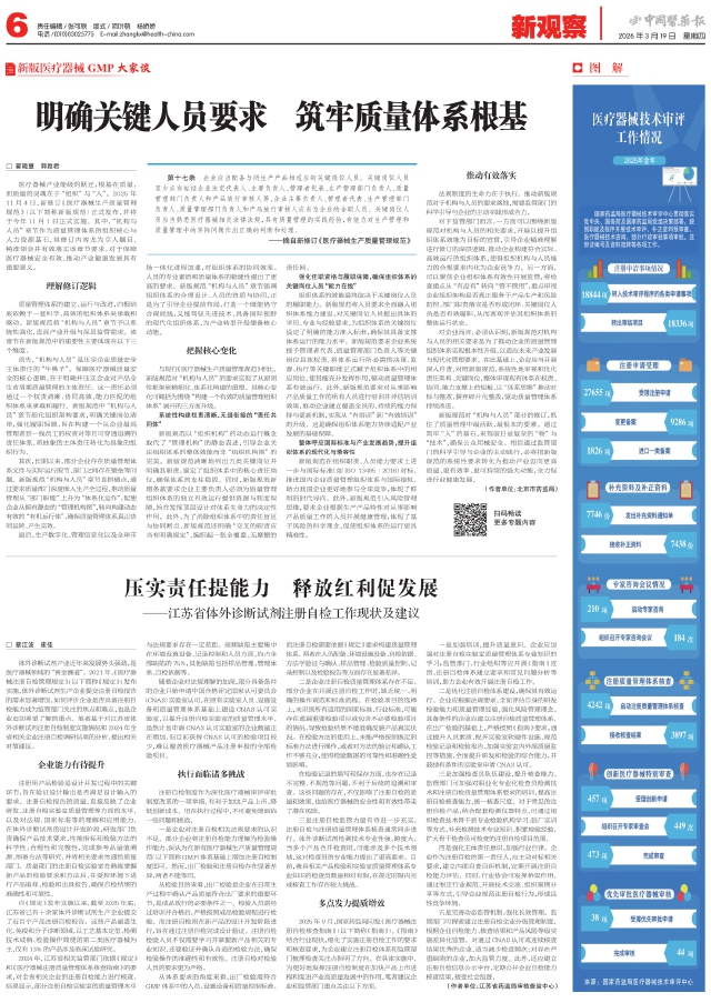 体外诊断试剂产业近年来发展势头强劲,是医疗器械领域的“黄金赛道”。2021年,《医疗器械注册自检管理规定》(以下简称《规定》)发布实施,体外诊断试剂生产企业提交注册自检报告的需求显著增加,如何评价企业是否具备注册自检能力成为监管部门关注的焦点和难点,也是企业迫切希望了解的重点。笔者基于对江苏省体外诊断试剂注册自检制度实施情况和2024年全省相关企业注册自检调研结果的分析,提出相关对策建议。
