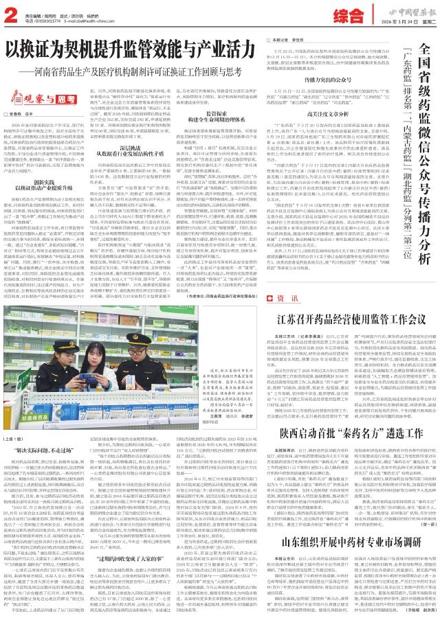 调研组强调,监管部门要按照“谁开办、谁管理”原则,督促中药材专业市场开办者建立健全并落实中药材质量管理制度。要强化风险防控,加强对入场经营业户及进场中药材的审核与管理,通过开展培训教育、业务指导和帮扶,增强经营主体的守法合规意识、质量意识。要实施严格监管,根据《菏泽市中药材市场管理办法》进一步强化日常检查与定期巡查,严厉打击中药材非法购进、掺杂使假以及非法加工销售中药饮片等违法违规行为。要强化规范提升,完善市场服务功能,帮助改善储存养护条件,提升市场整体管理水平,推进建立现代中药材仓储物流中心,促进中药材专业市场持续健康发展。 (齐桂榕 赵洪涛)