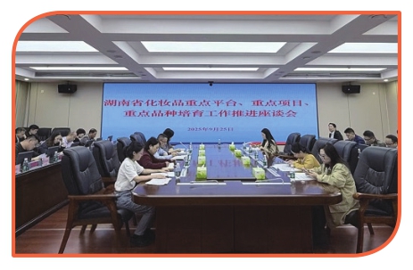 图为2025年9月25日,湖南省药监局组织召开化妆品重点平台、重点项目、重点品种培育工作推进座谈会。
